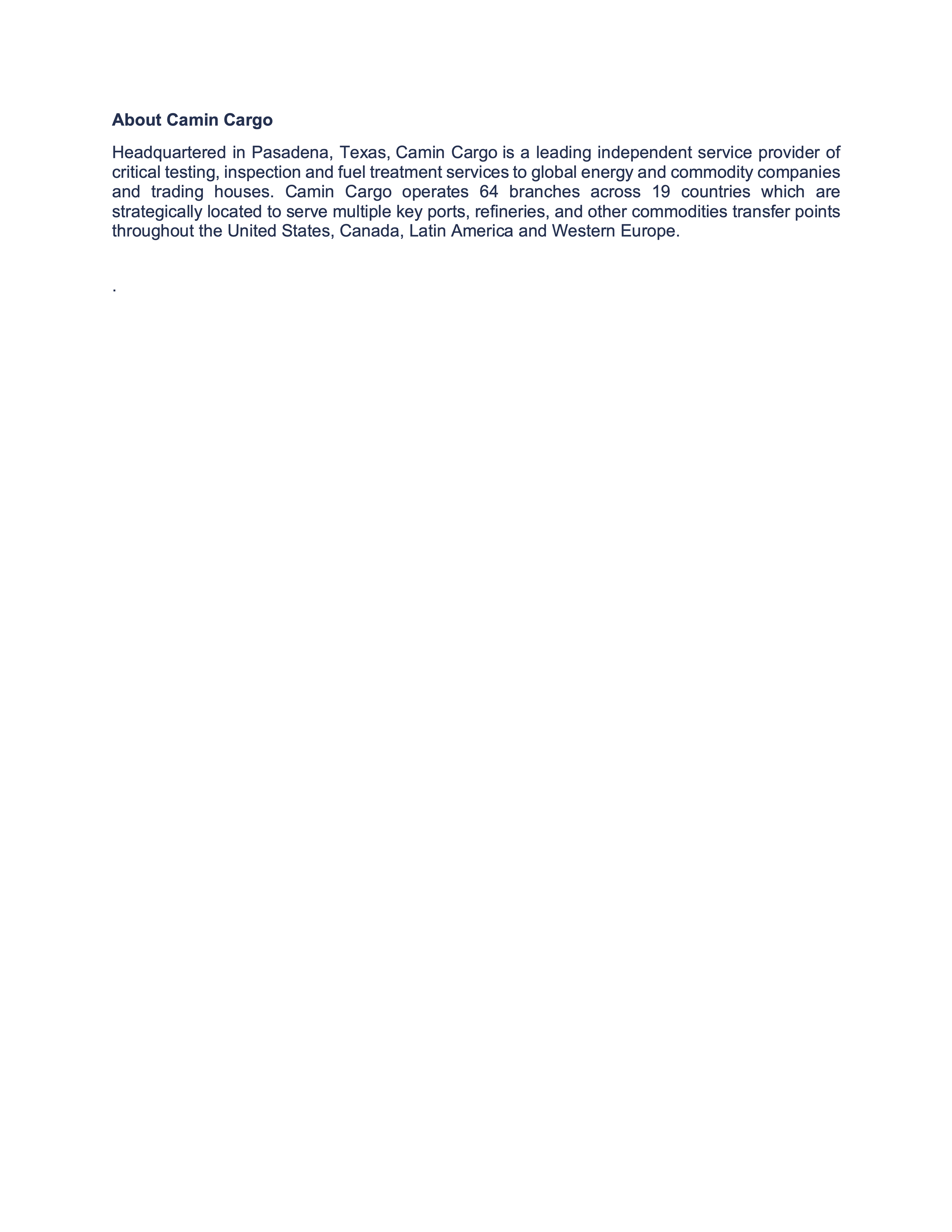 Press Release: Camin Cargo Embarks On Growth Strategy Under New CEO; Provides Project Updates May 19 Written By Camin Admin Camin Admin https://www.camincargo.com